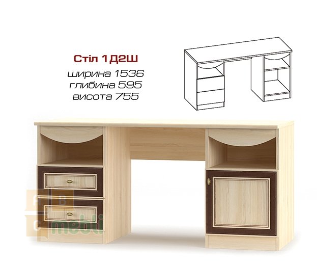 Цветовая гамма модуля Стол 2Ш1Д Дисней: дуб светлый