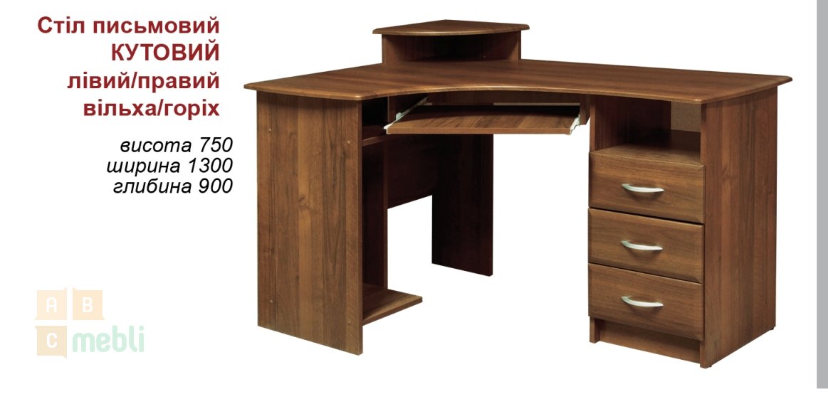 Цветовая гамма фасадов Стол компьютерный угловой Мебель-Сервис: представлена в таких цветах: ольха, орех