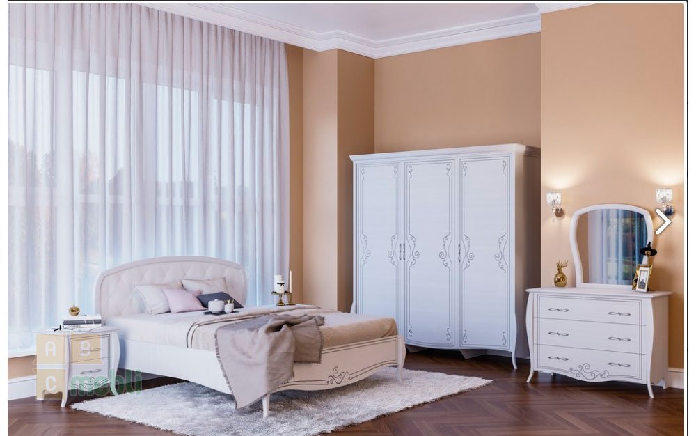 Цена указана за комплект В комплект входит: 1) тумба прикроватная - 2шт, 2) кровать 1,6, 3) комод, 4) зеркало, 5) шкаф 3Д