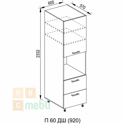 - глубина, мм: 570