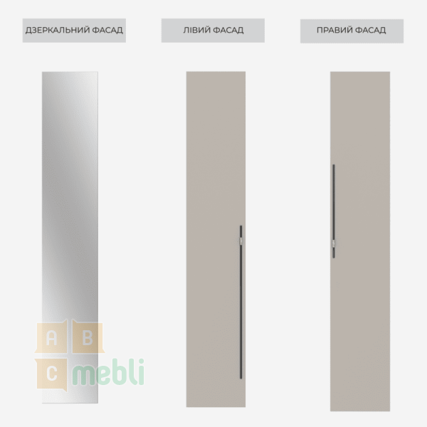 При ширині модуля 800 мм потрібно вибирати два фасади: Лівий та Правий.