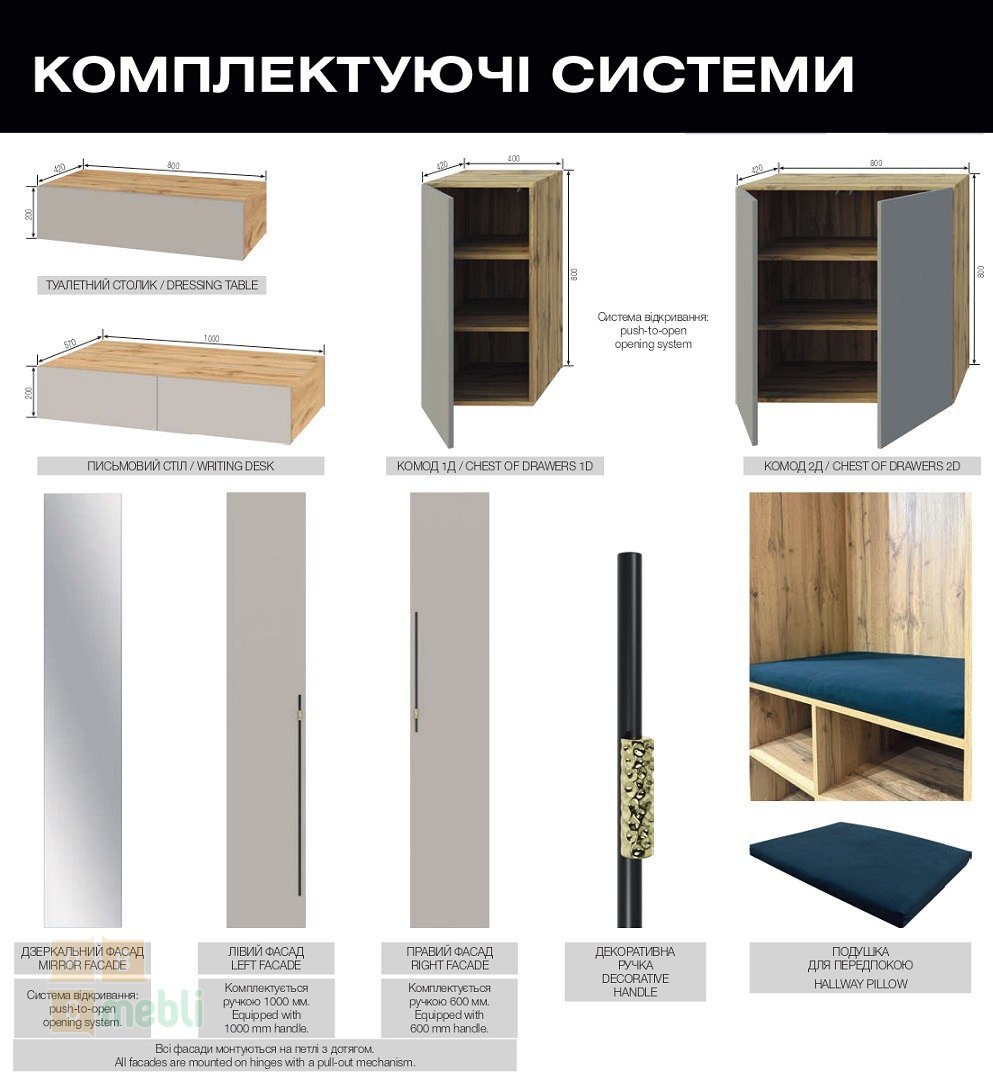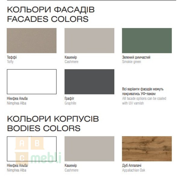 Кольори Фасадів ДСП: Тоффі / Кашемір / Німфея Альба / Графіт.