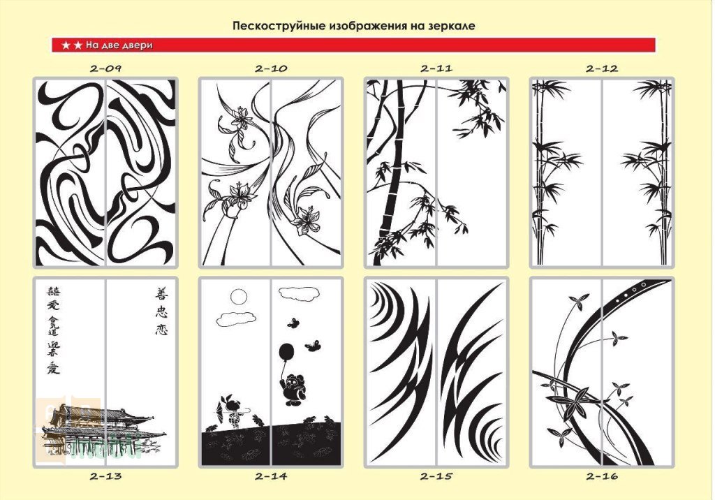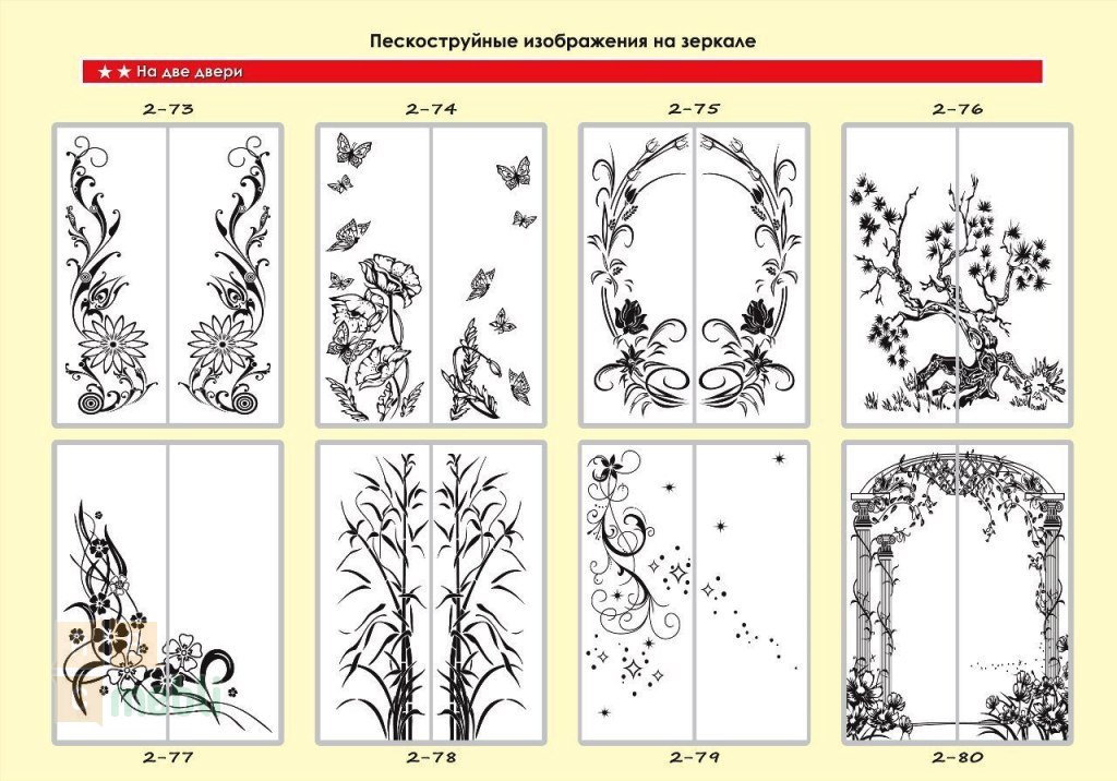 Образцы фасадов пескоструй, цвет корпуса, шкаф-купе в разрезе смотрите в разделе Галерея