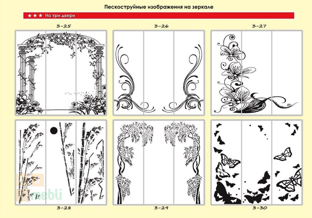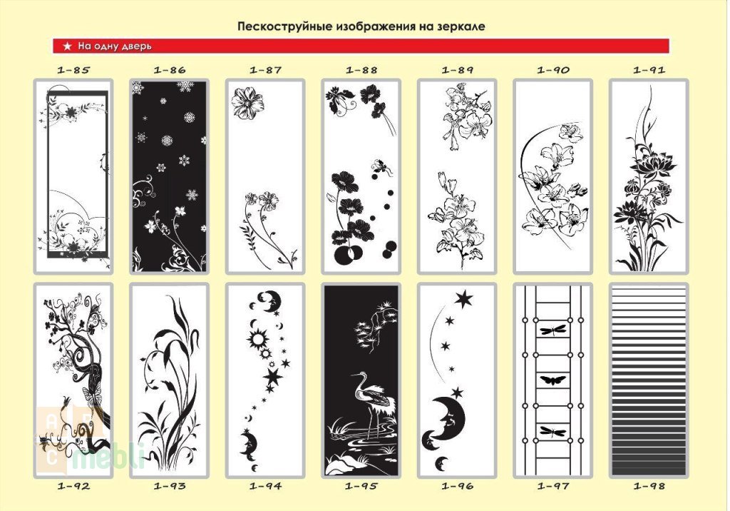 Образцы фасадов пескоструй, цвет корпуса, шкаф-купе в разрезе смотрите в разделе Галерея