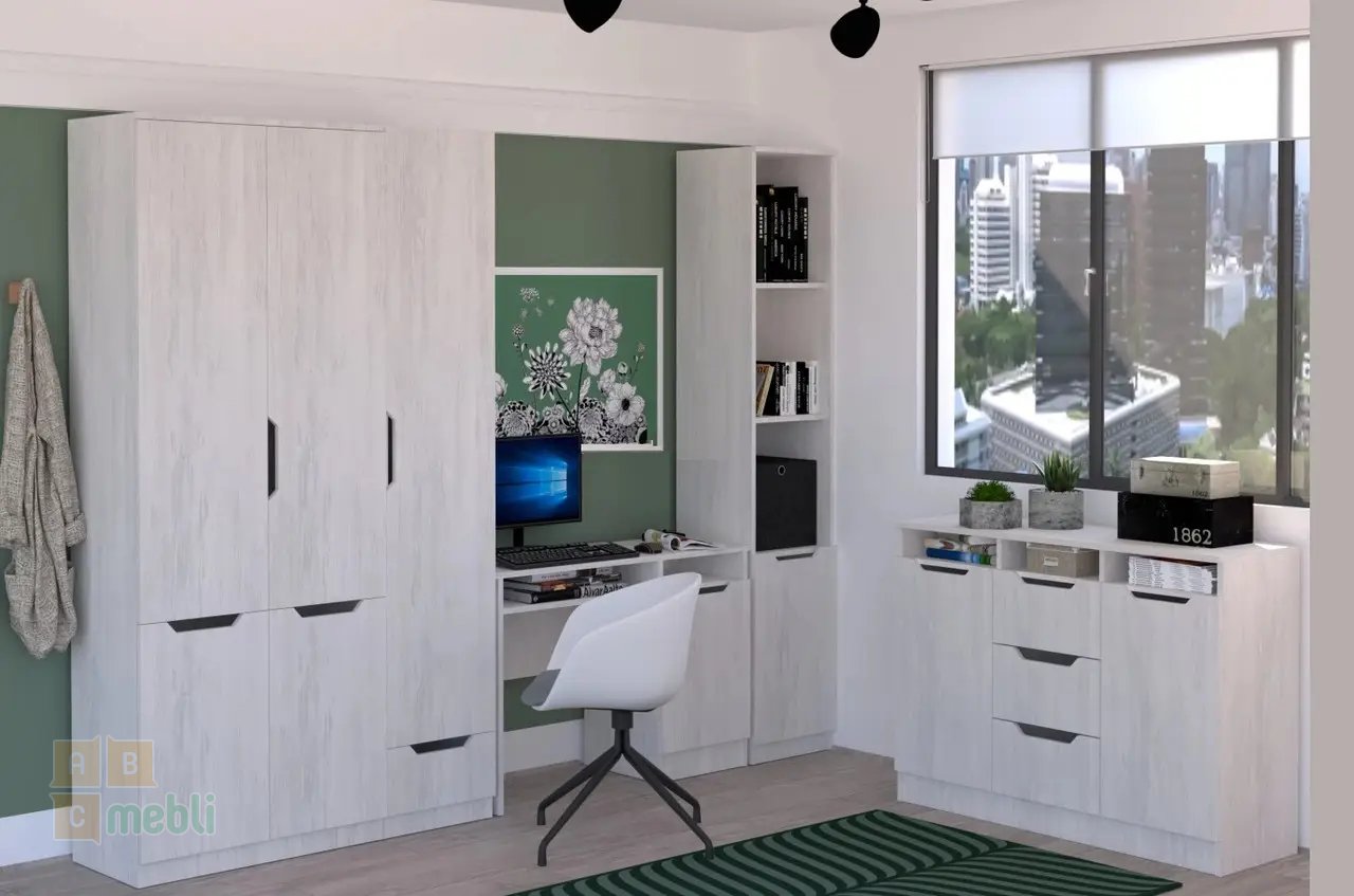 Локи – модульна колекція. У ній є стелажі, пенали, комоди та ліжко. Дивіться всю колекцію Локі Тут.